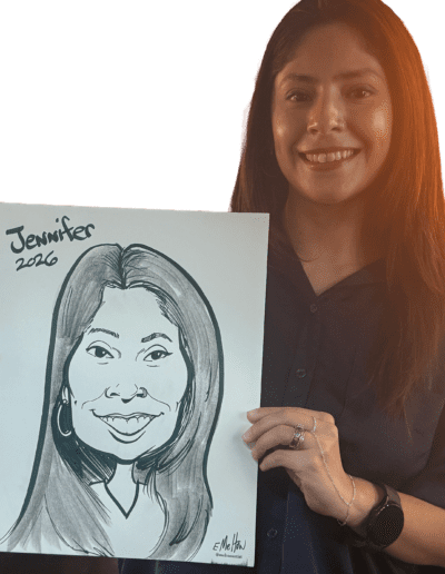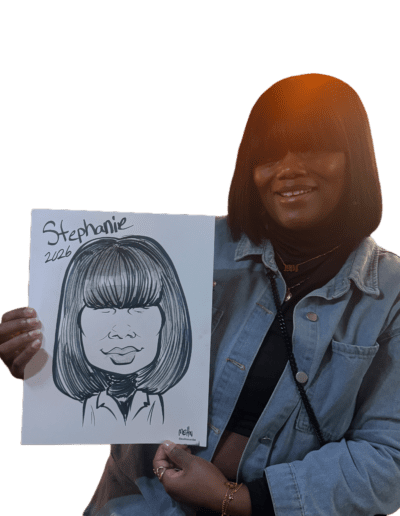 Live caricature drawing combines entertainment and personalized art. Guests love watching the drawings come to life and taking home their portrait.
